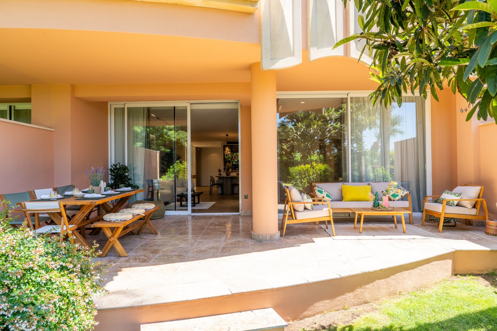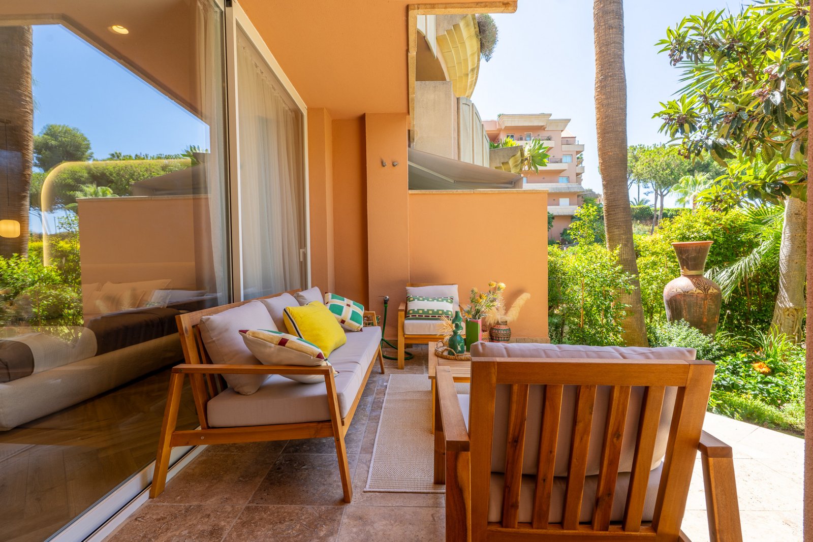 Experience refined modern living in this fully renovated 3-bedroom, 2-bathroom ground-floor apartment in the prestigious Magna Marbella community. Spanning 162 built m² of minimalist, modern interior design, this home offers seamless comfort with underfloor heating, a completely new air conditioning and ventilation system, and premium Siemens kitchen appliances including an integrated coffee machine. Elegant finishes, including Hansgrohe and Villeroy & Boch bathroom fixtures and high-end materials throughout, elevate every corner of the space. The apartment is offered fully furnished and features a spacious walk-in closet, a 32 m² terrace, and access to a 45 m² green space ideal for sunbathing, relaxing with a book, or hosting al fresco dinners. Being on the ground floor also gives you the added benefit of easy indoor-outdoor flow, direct garden access, and more privacy compared to upper-floor units. This home offers a rare blend of privacy, security, and convenience. A big private parking space and storage room are included, making this a turn-key opportunity for families, retirees, or investors looking for a high-quality property on the Costa del Sol. Magna Marbella is one of Nueva Andalucía’s most sought-after gated communities, known for its proximity to Golf Valley and located just minutes from the glamour of Puerto Banús, top international schools, and Marbella’s best beaches, shopping, and dining. The apartment is also ideally situated just minutes away from five prestigious golf clubs such as Magna Marbella Golf Club, Aloha Golf Club, Los Naranjos Golf Club, Real Club de Golf Las Brisas, and La Quinta Golf making it a perfect choice for golf enthusiasts. The complex features 24/7 security, beautiful gardens, three swimming pools, and a highly regarded on-site restaurant. Residents also enjoy exclusive access to a scenic 9-hole golf course, making it perfect for those seeking a tranquil, upscale lifestyle.Listed in April 2025