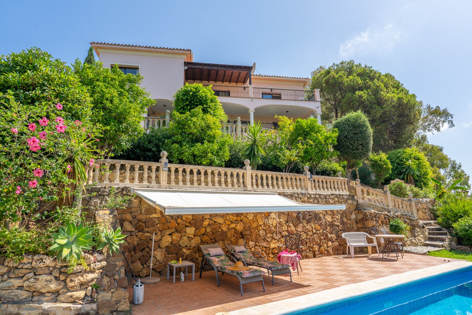 8 bedrooms | 9 bathrooms | Private plot of 1,358 m² | Gated community with 24-hour security Set high on a hillside within the prestigious El Herrojo gated community in Benahavís, this stately villa blends classic Andalusian charm with exceptional potential for modern transformation. With panoramic views of the sea and surrounding mountains, the home offers a rare combination of privacy, elegance, and space. El Herrojo is one of the most exclusive and secure urbanizations in the La Quinta area. With 24-hour security, peaceful surroundings, and large private plots, it attracts discerning international buyers seeking a refined lifestyle close to golf, nature, and Marbella’s vibrant social life. Built on a generous plot of over 1,300 m², the property boasts approximately 627 m² of constructed area across several levels. Its façade features timeless architectural details including columns, wrought iron balconies, and traditional tiled roofing. Inside, the villa comprises eight spacious bedrooms, nine full bathrooms, soaring ceilings, abundant natural light, and a layout that flows effortlessly into the outdoor spaces. Key exterior features include multiple south-facing terraces, a large private pool surrounded by mature gardens, covered porches, and several alfresco lounging and dining areas—ideal for year-round enjoyment. The property also benefits from a private driveway, interior garage space for at least two vehicles, and additional parking within the grounds. Auxiliary areas such as a gym, storage rooms, and a multipurpose space offer even more versatility. El Herrojo’s prime location ensures excellent access to La Quinta Golf, international schools, and the amenities of Benahavís, Nueva Andalucía, and Puerto Banús. Whether move-in ready or as a luxury renovation project, this villa is a solid investment in one of the Costa del Sol’s most desirable residential enclaves. Property Highlights Timeless Andalusian architecture with original features and solid construction Panoramic sea and nature views from multiple areas Private pool, gardens, porches, and sunny terraces for outdoor living Independent access, garage for at least two cars, plus additional parking Significant renovation and expansion potential Located within a secure, tranquil community with 24-hour gated access A home with soul, character, and a truly privileged location. A rare private retreat in one of the finest settings on the Costa del Sol.Listed in July 2025