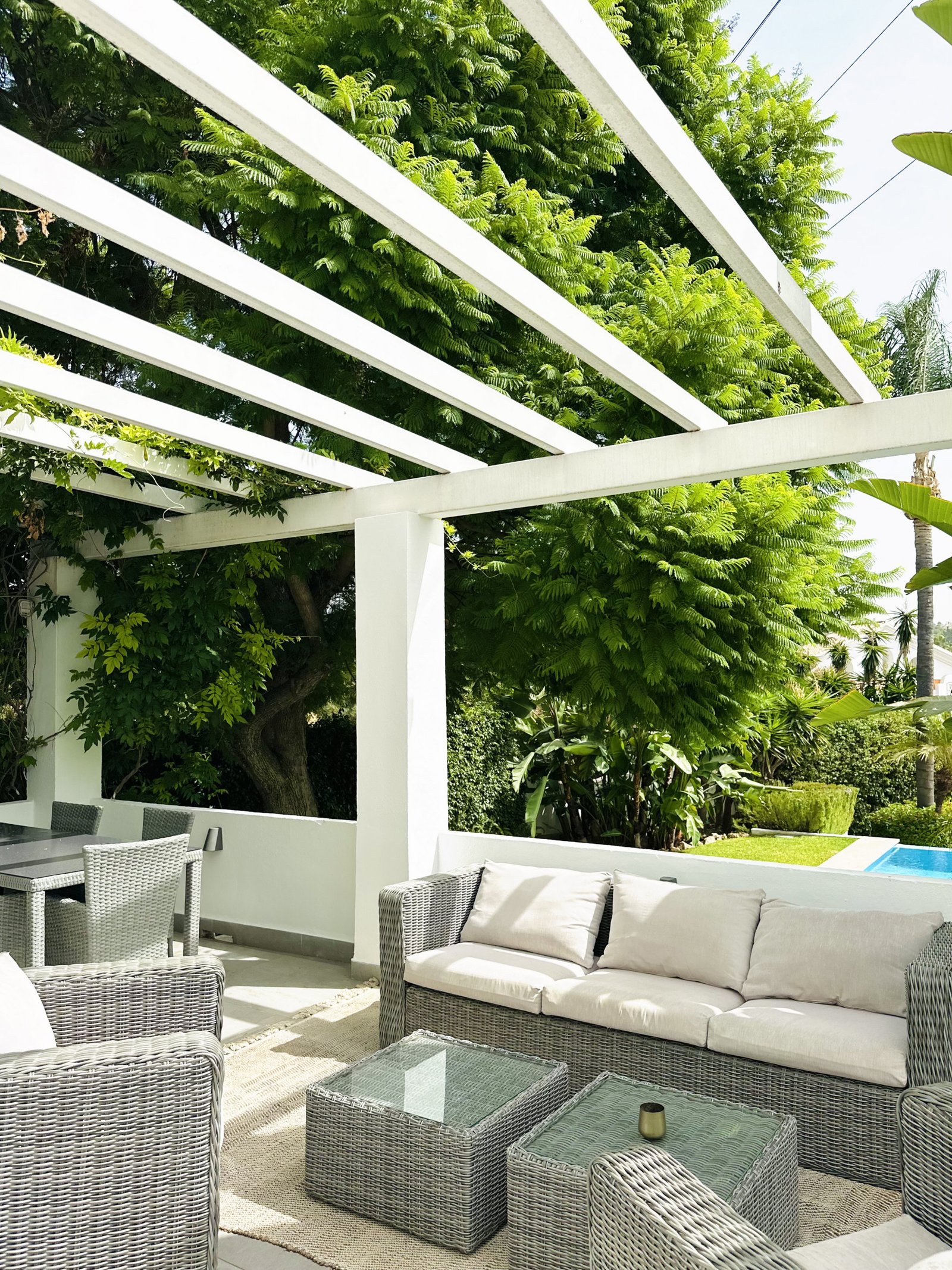 This beautifully renovated townhouse in Nueva Andalucía combines contemporary design, premium finishes, and luxurious comfort, making it one of the most desirable homes available for long-term rent in Marbella. Fully refurbished in 2025 with a highly expensive renovation, the residence is presented in immaculate condition with bespoke designer furniture and top-quality materials throughout. Every detail reflects sophistication, from elegant lighting to carefully chosen interior elements. The property offers 361 m² built over three levels, including 5 bedrooms and 3 bathrooms, with bright and spacious living areas that open directly to terraces, a landscaped garden, and a private swimming pool. The fully fitted modern kitchen with premium appliances creates the perfect hub for family living and entertaining. On the lower level, there is a studio apartment with pre-installation for a kitchen, which can easily be transformed into a self-contained guest or staff suite. Additionally, the basement includes a large multipurpose room that can serve as a private cinema, games room, or extra storage. One of the property’s most unique advantages is its abundant storage: numerous spacious compartments are cleverly integrated throughout the home, making it as practical as it is luxurious. The residence also includes a private garage with space for up to 5 vehicles, guest accommodation, and staff quarters, all within a secure gated community close to golf courses, beaches, schools, and the vibrant lifestyle of Puerto Banús. Highlights Fully renovated in 2025 with premium finishes Expensive, custom-designed furniture throughout 361 m² built over three levels 5 bedrooms, 3 bathrooms Private pool and landscaped garden Studio with pre-installation for a kitchen in the basement Multipurpose room ideal for cinema, games room, or storage Exceptional storage capacity with large compartments Garage for up to 5 cars Prime location in Nueva Andalucía near golf, beaches, and Puerto Banús A unique opportunity to rent a luxurious, fully furnished home that combines elegance, comfort, and flexibility — perfect for tenants who value style, space, and exclusivity in Marbella.Listed in September 2025