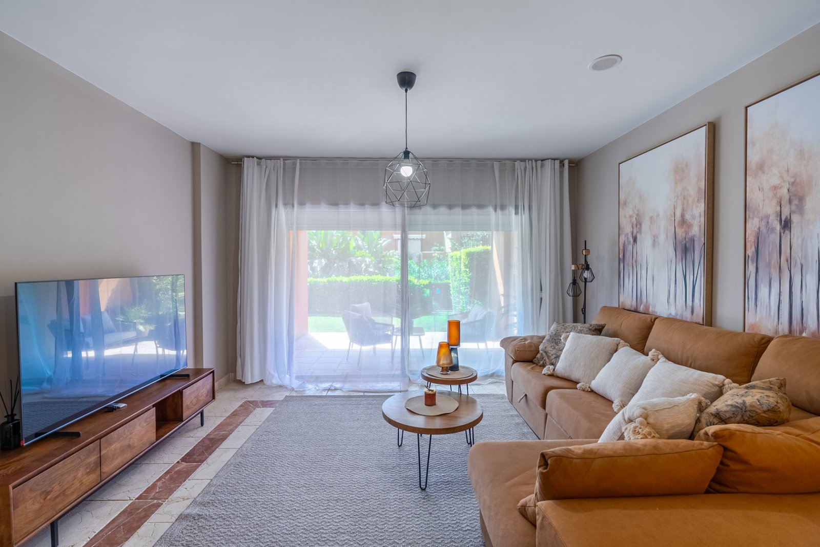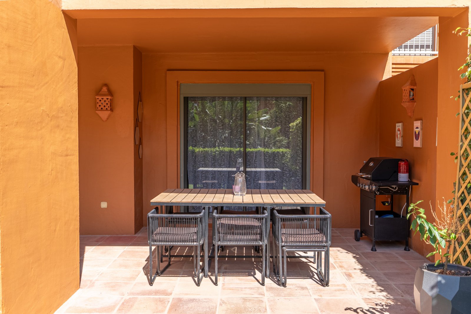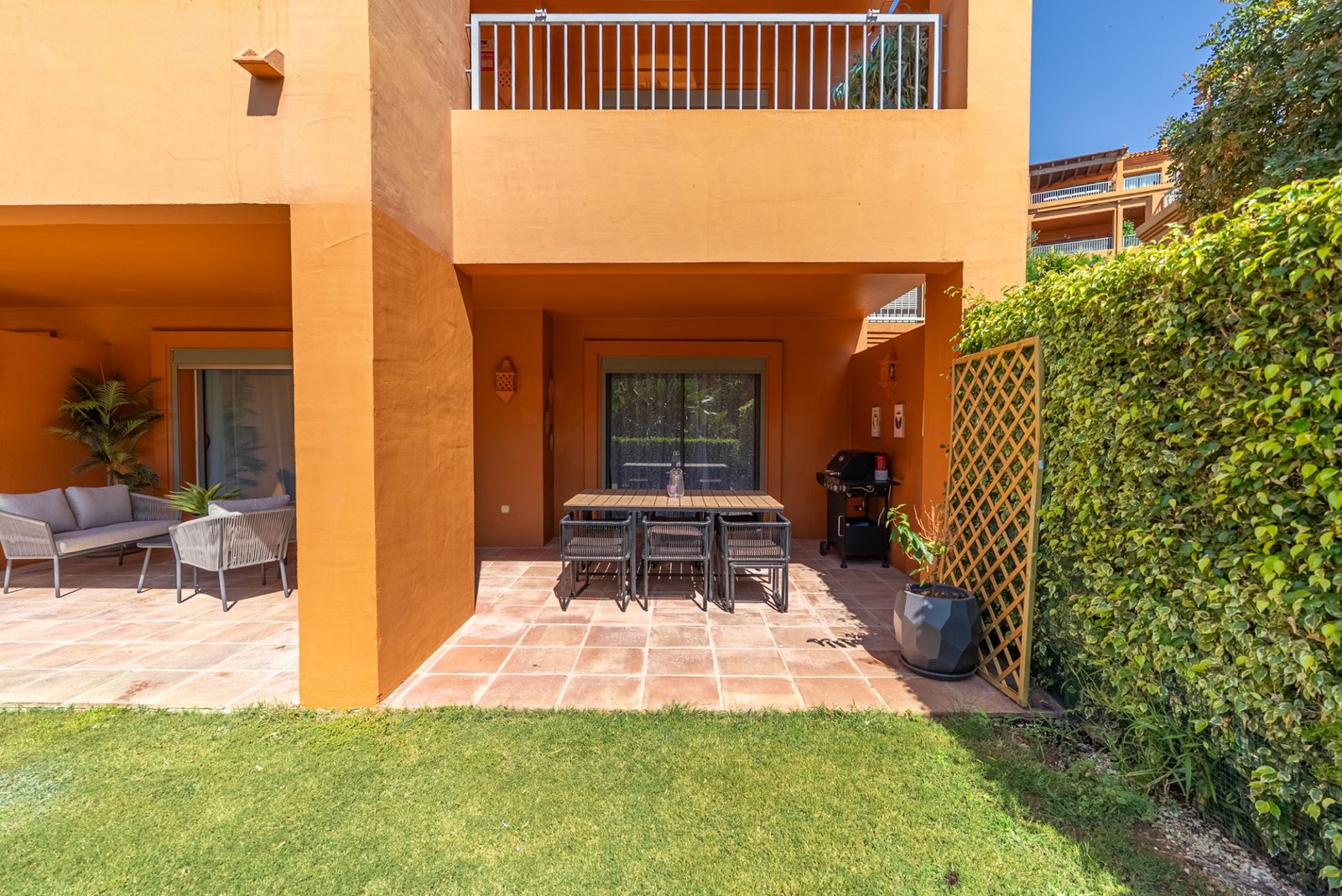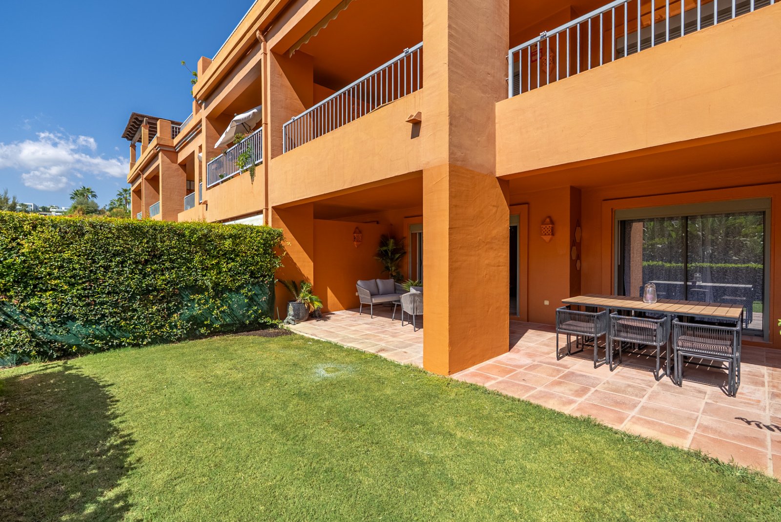 This beautifully renovated three-bedroom, two-bathroom apartment is located in the exclusive gated community of Benatalaya, a prestigious residential area surrounded by golf courses and the rolling green hills of Estepona. Designed with comfort and elegance in mind, the property offers spacious interiors, modern finishes, and a private outdoor space that makes it an ideal home on the Costa del Sol. With a total built area of 135 m², the apartment features a bright living and dining room that opens directly onto a 33 m² west-facing terrace and a private 38 m² garden, perfect for enjoying the Mediterranean lifestyle with family and friends. The interiors have been recently updated, presenting a fresh and contemporary style, while the fully equipped kitchen ensures practicality for everyday living. The three bedrooms are generously sized, and the layout offers both privacy and functionality. The Benatalaya community provides an exceptional range of amenities for its residents. These include several outdoor swimming pools, beautifully landscaped gardens, a spa area with sauna and hammam, and a fully equipped gym. The complex also benefits from 24-hour concierge service and security, ensuring peace of mind and a safe living environment. Its location is one of its strongest advantages. Set between Marbella and Estepona, Benatalaya offers quick access to international schools, supermarkets, restaurants, and all essential services. Estepona town, Puerto Banús, and Marbella are only a short drive away, while the beaches of the Costa del Sol can be reached within minutes. This ground floor apartment combines style, security, and comfort in one of the most desirable areas of Estepona East. It represents an excellent opportunity for families, golfers, and those seeking a tranquil home in a well-connected location.Listed in September 2025