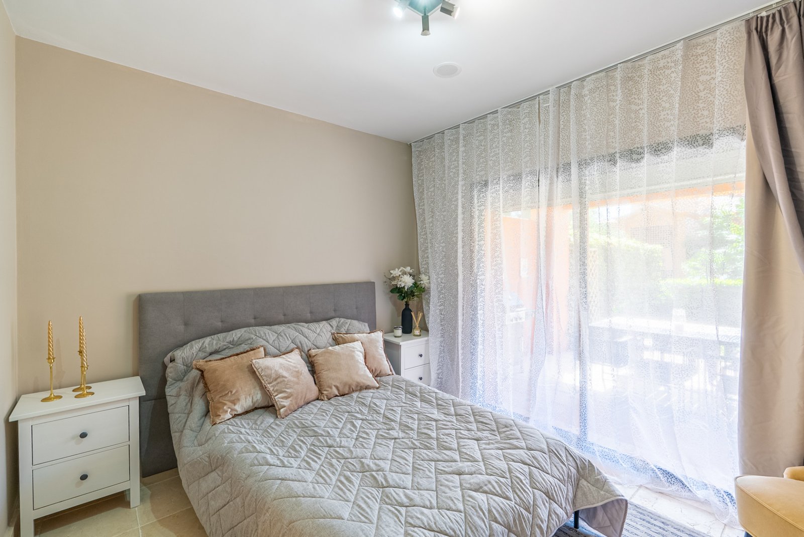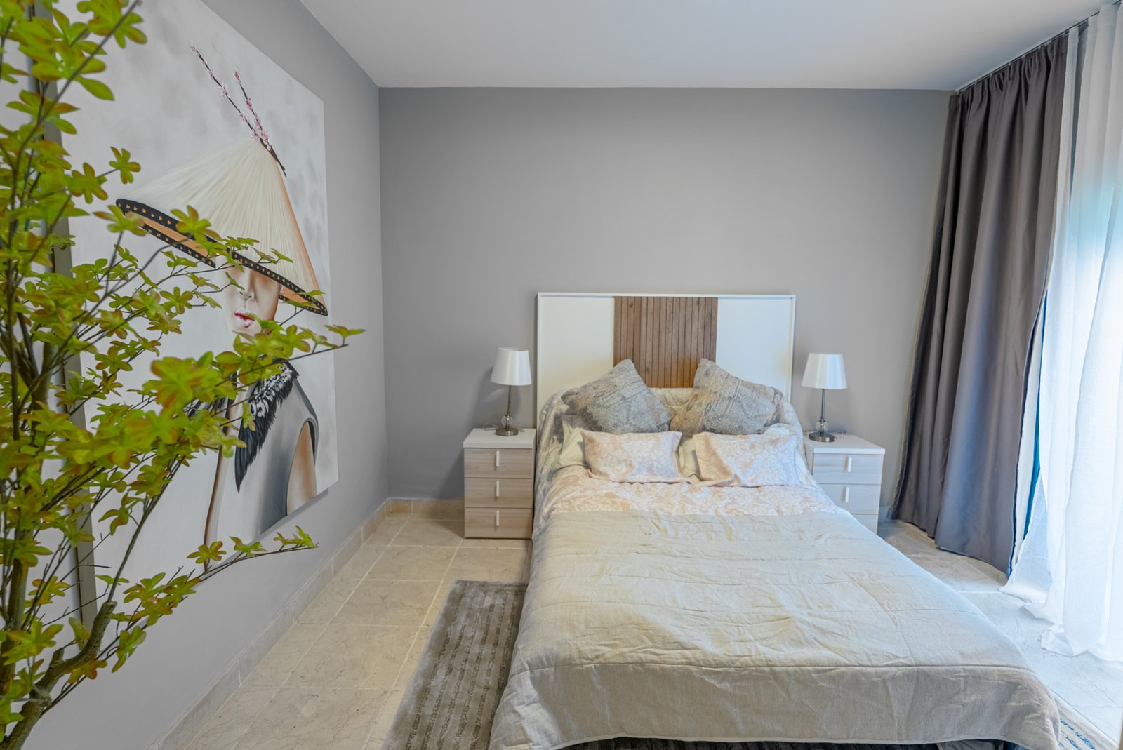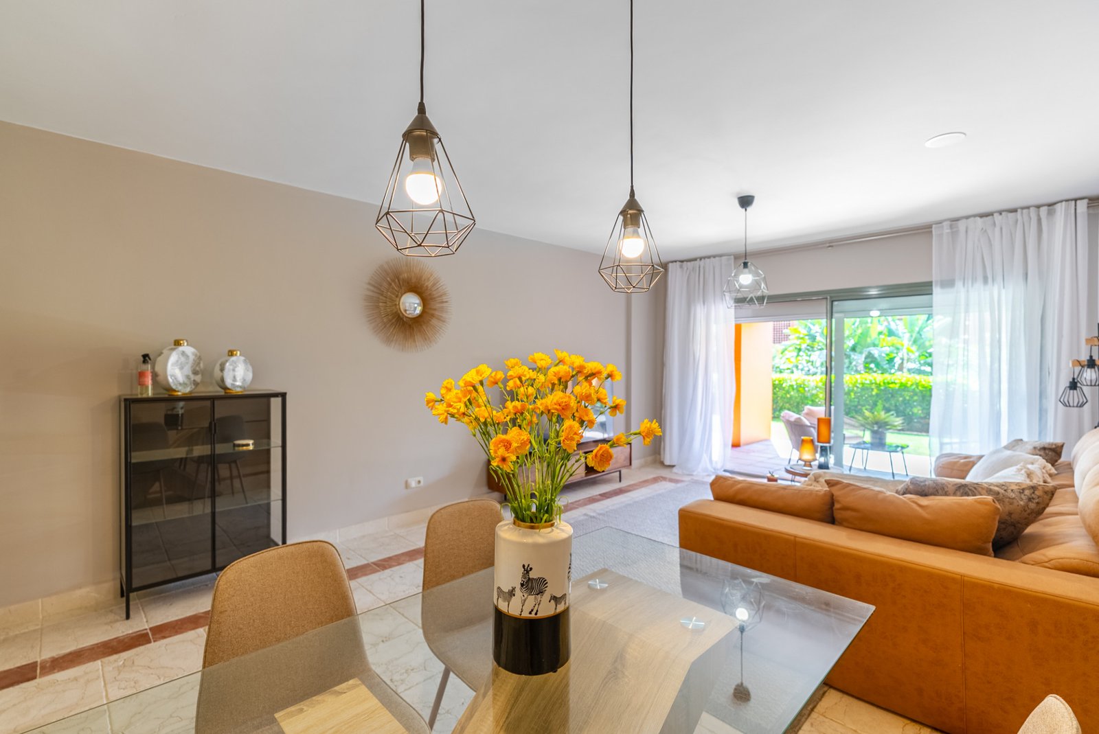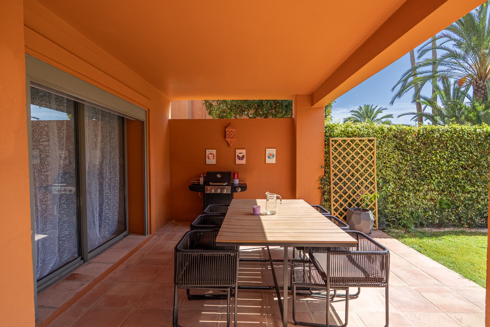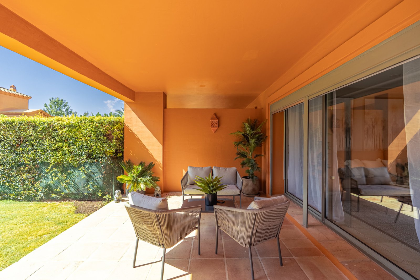 This beautifully renovated three-bedroom, two-bathroom apartment is located in the exclusive gated community of Benatalaya, a prestigious residential area surrounded by golf courses and the rolling green hills of Estepona. Designed with comfort and elegance in mind, the property offers spacious interiors, modern finishes, and a private outdoor space that makes it an ideal home on the Costa del Sol. With a total built area of 135 m², the apartment features a bright living and dining room that opens directly onto a 33 m² west-facing terrace and a private 38 m² garden, perfect for enjoying the Mediterranean lifestyle with family and friends. The interiors have been recently updated, presenting a fresh and contemporary style, while the fully equipped kitchen ensures practicality for everyday living. The three bedrooms are generously sized, and the layout offers both privacy and functionality. The Benatalaya community provides an exceptional range of amenities for its residents. These include several outdoor swimming pools, beautifully landscaped gardens, a spa area with sauna and hammam, and a fully equipped gym. The complex also benefits from 24-hour concierge service and security, ensuring peace of mind and a safe living environment. Its location is one of its strongest advantages. Set between Marbella and Estepona, Benatalaya offers quick access to international schools, supermarkets, restaurants, and all essential services. Estepona town, Puerto Banús, and Marbella are only a short drive away, while the beaches of the Costa del Sol can be reached within minutes. This ground floor apartment combines style, security, and comfort in one of the most desirable areas of Estepona East. It represents an excellent opportunity for families, golfers, and those seeking a tranquil home in a well-connected location.Listed in September 2025